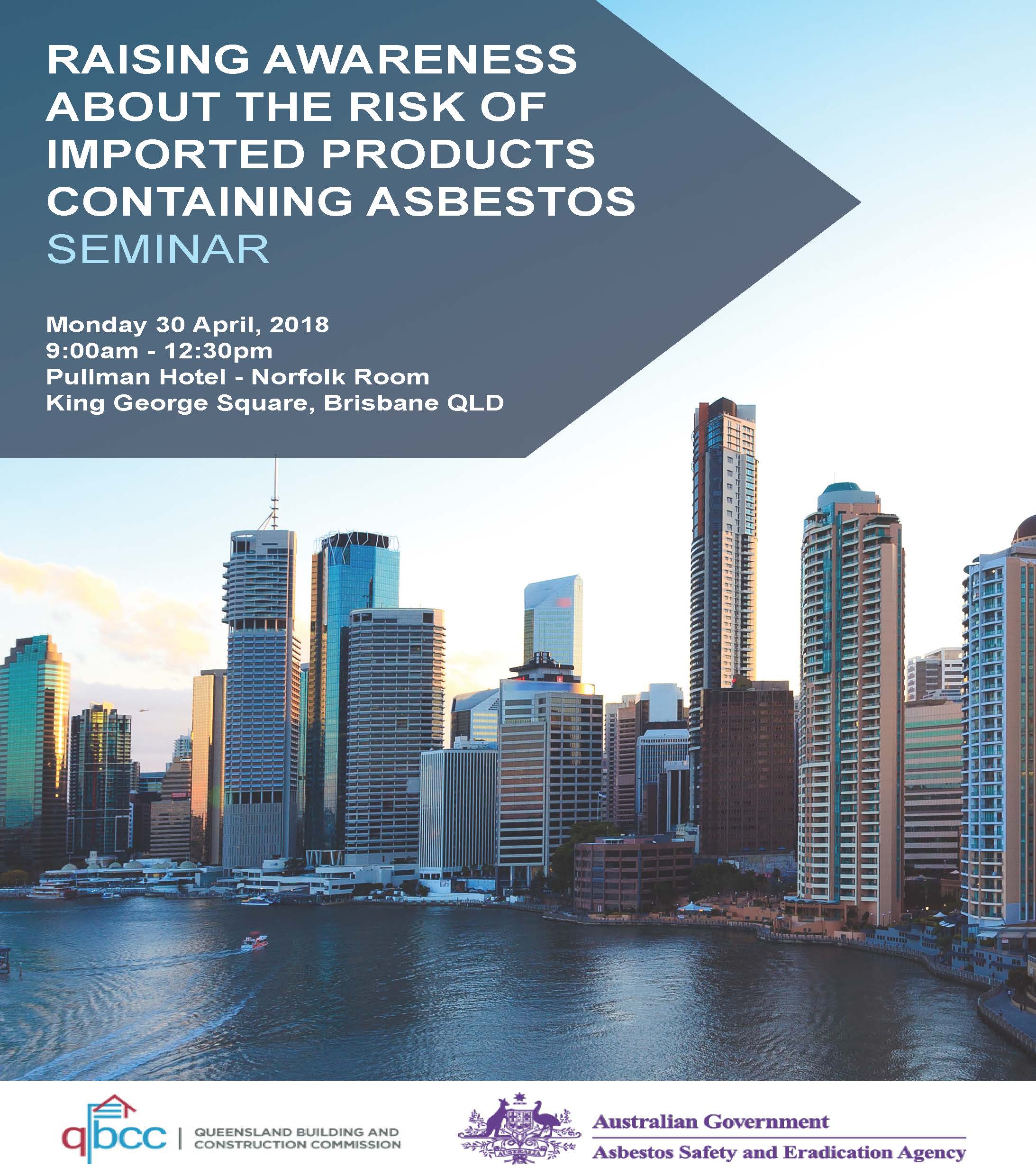 The Asbestos Safety and Eradication Agency and Queensland Building and Construction Commission are holding a seminar on Raising awareness about the risk of imported products containing asbestos.
